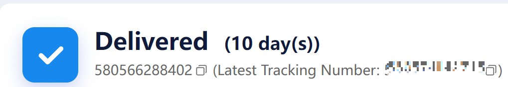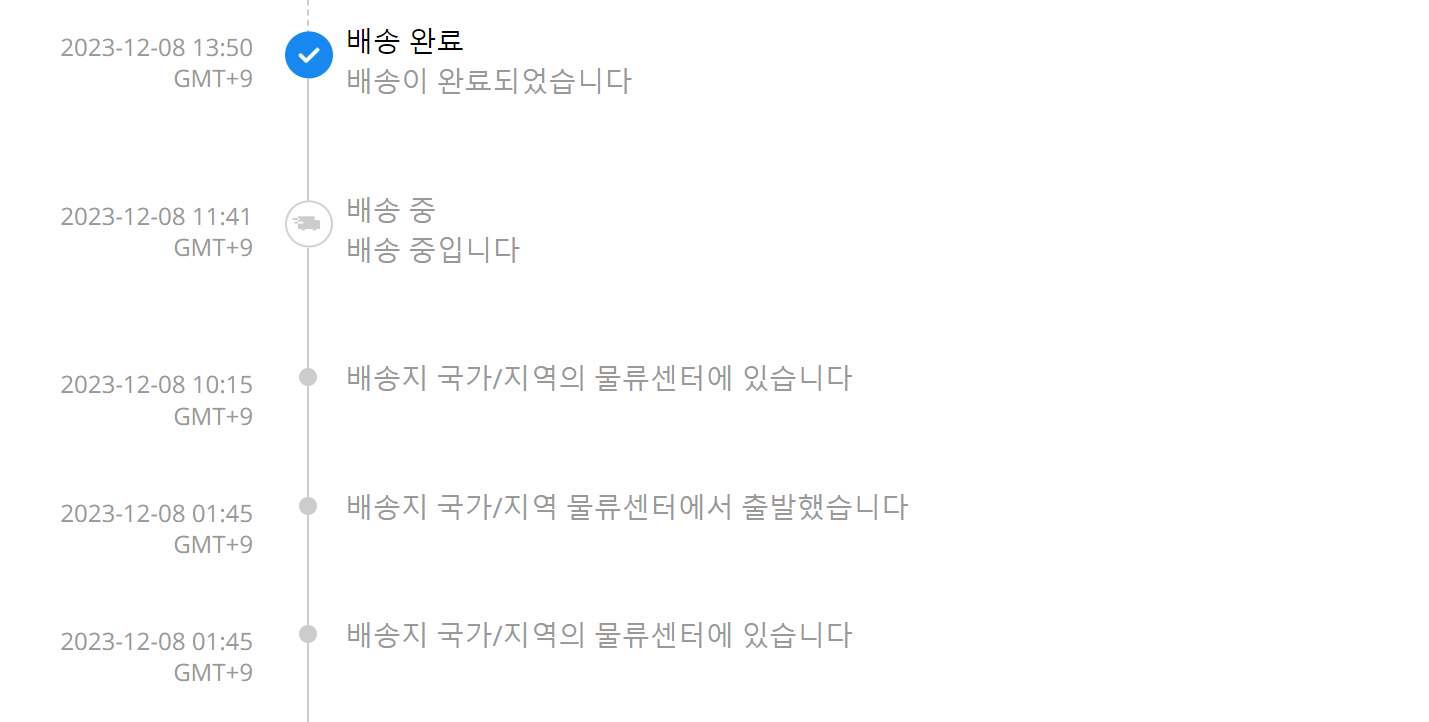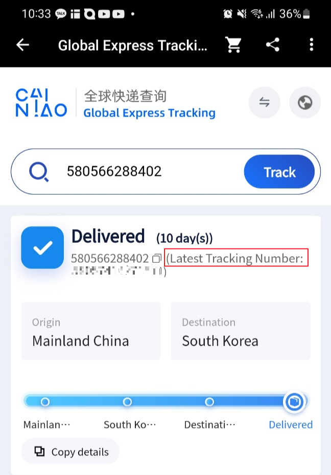 Latest Tracking Number 을 보면 운송장번호가 바뀐것을 볼 수 있습니다. 해당 운송장으로 배송조회를 하면 정상적으로 배송내역을 확인할 수 있습니다.
