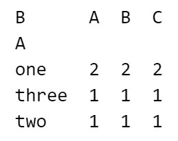 cross_tab = pd.crosstab(df['A'], df['B'])