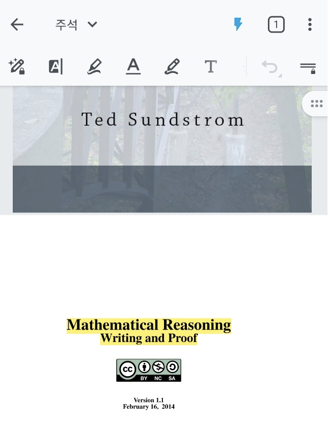 다른 기기에서도 하이라이트가 공유되는지 확인해보겠습니다. PDF 뷰어를 통해서 첫페이지 책 제목에 하이라이트를 했습니다. 일부 뷰어는 저장이 안되는 것 같습니다. 참고로 뷰어를 엣지로 했습니다. 주석 자동저장이 안되긴 하지만 빙이랑 쓰기 좋아서 PDF는 엣지로 보게 되네요 ㅎㅎ