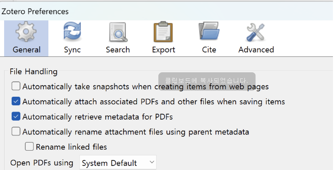 이제 zotfile(발음주의)을 설치하셔야 합니다.