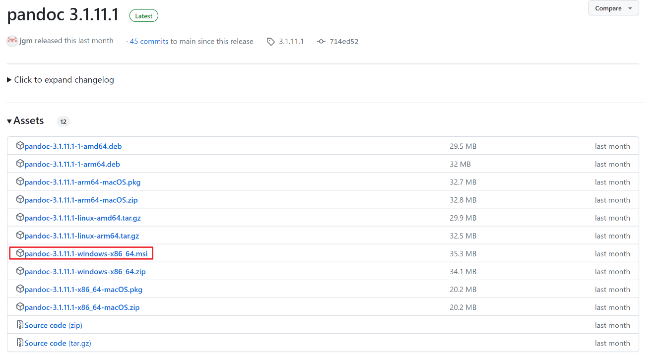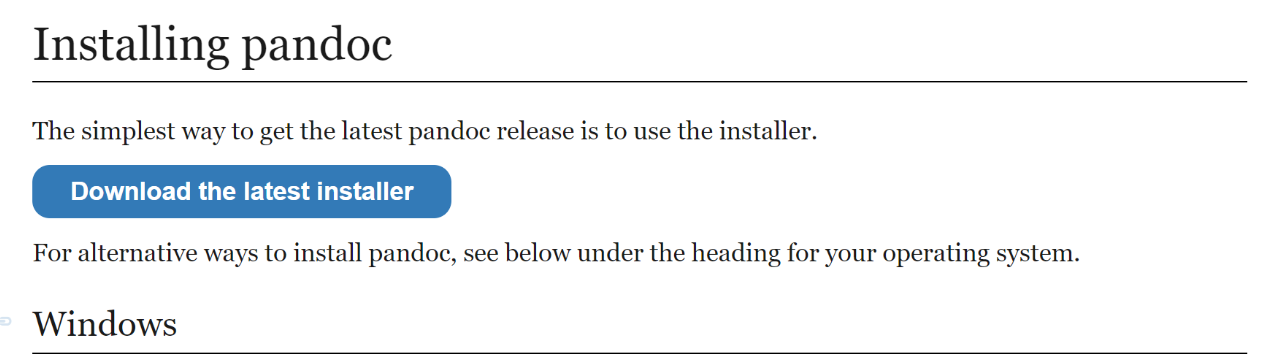 설치를 해야겠죠? 아래 링크에서 pandoc 설치파일을 받으실 수 있습니다.