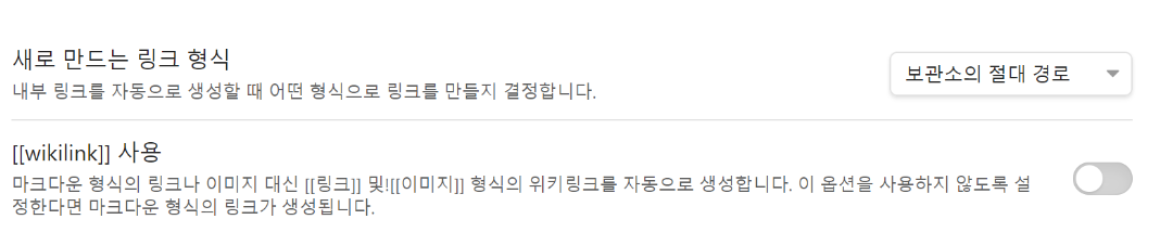 옵션 - 파일 및 링크 창으로 가서 아래 두개를 다음과 같이 바꿔줍니다.