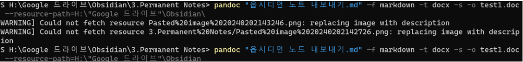 Pandoc은 옵시디언에서 제공하는 wikilink 형식은 지원하지 않아서 먼저 이미지 형식을 바꿔줘야 합니다.