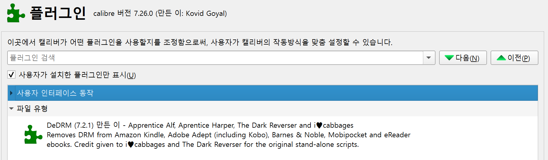 Calibre 플러그인 Calibre의 가장 큰 특징은 플러그인을 받을 수 있다는 것입니다. 호환성도 좋고 확장성이 굉장히 좋은 프로그램입니다. 내장 프로그램 안에서 플러그인을 받을 수 있는데 전부 다