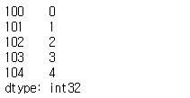 s3 = pd.Series(np.arange(5),np.arange(100,105),dtype=np.int32))