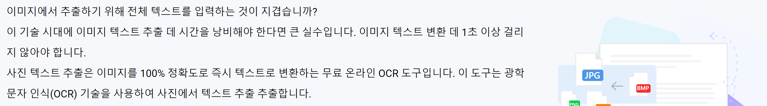이미지의 텍스트를 추출하는 사이트가 여럿있는데 그중에서도 수행을 잘하는 무료 이미지 텍스트 추출 사이트를 소개합니다. 이미지 파일뿐만 아니라 PDF도 가능합니다.