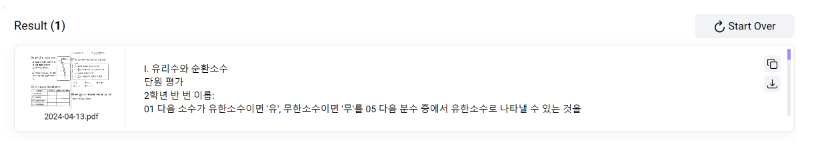 교재로 만들었던 수학문제 pdf를 해봤는데 20초도 안되서 텍스트 추출을 해주었습니다. 확실히 빠릅니다. 단, 10MB 아래로만 가능합니다.