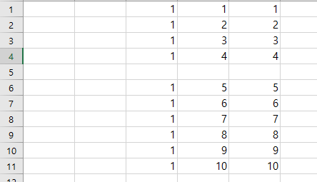 5 row의 4 column 자리에 10이 입력되는 것을 볼 수 있습니다. 단순 매크로를 실행하고 싶으면 for문을 이용해야하는데 그럴 경우 좌표를 index로 설정해서 값 입력을 요청하면 단순 메크로를 할 수 있습니다.