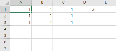 A1:C3 의 범위에 1을 넣고 D1의 범위에는 3을 넣었습니다.