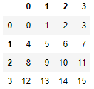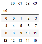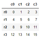 ddf = pd.Dataframe(np.arange(0,16).reshape(4,4))