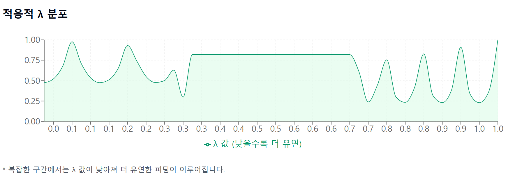 - 지역적 곡률 분석: 급격한 변화가 있는 구간에서는 λ를 작게