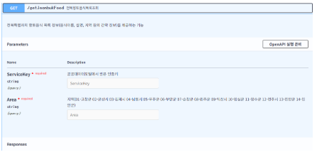 OpenAPI 실행준비를 클릭하면 아래 파라미터의 빈칸을 쓸 수 있게 해준다.