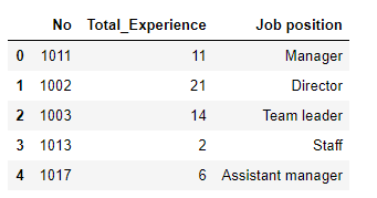 'Job position':['Manager','Director','Team leader','Staff','Assistant manager']}
